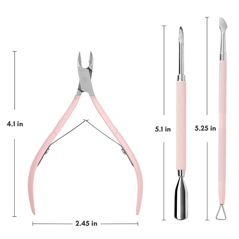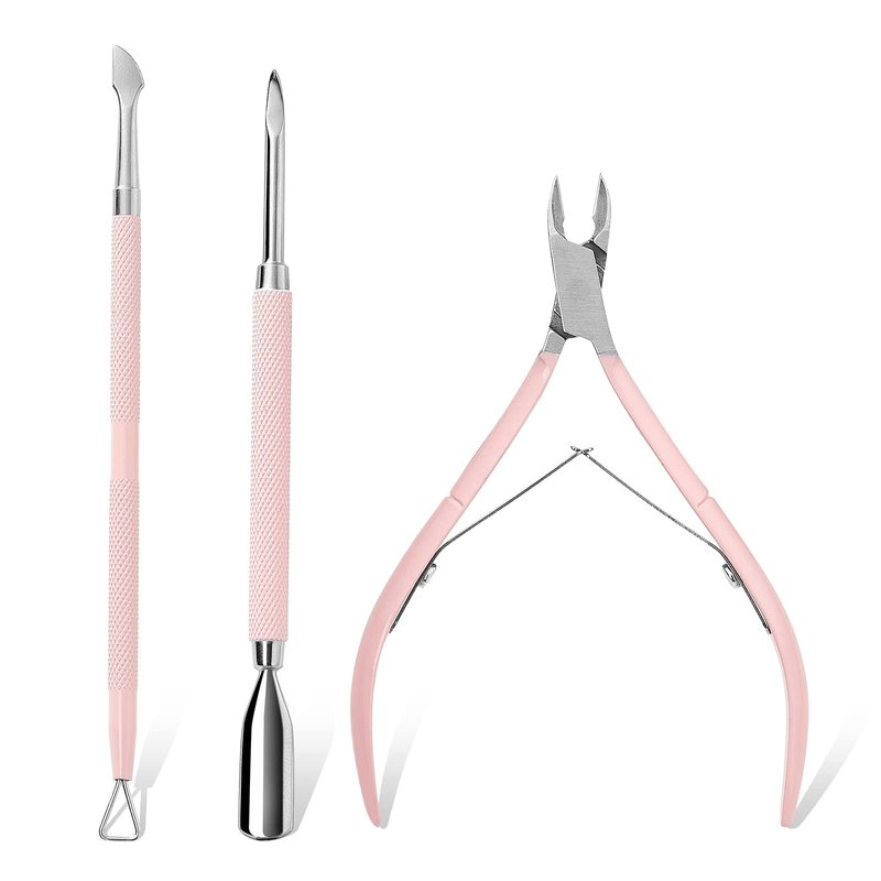 Makartt Cuticle Trimmer with Cuticle Pusher, 3 PCS Pink Nail Cuticle Nipper Professional Pedicure Manicure Tools with Stainless Steel Dual End Pusher, Nail Scraper