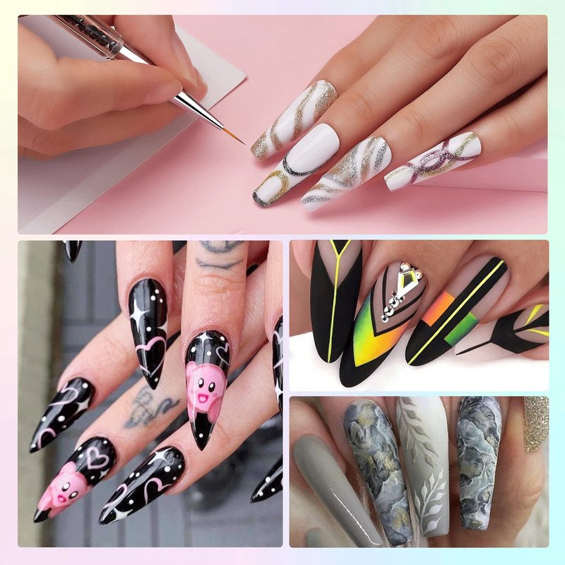 - SOFT AND THIN NAIL LINER BRUSH- These nail art liner brushes are specially for nail art diy detail design, painting like drawing lines, flowers, french nails, ripples, geometric figures, and other nail patterns with painting gel polish, or doing ombre nails with colored gel nail polish, or 3D nail art with builder nail gel.