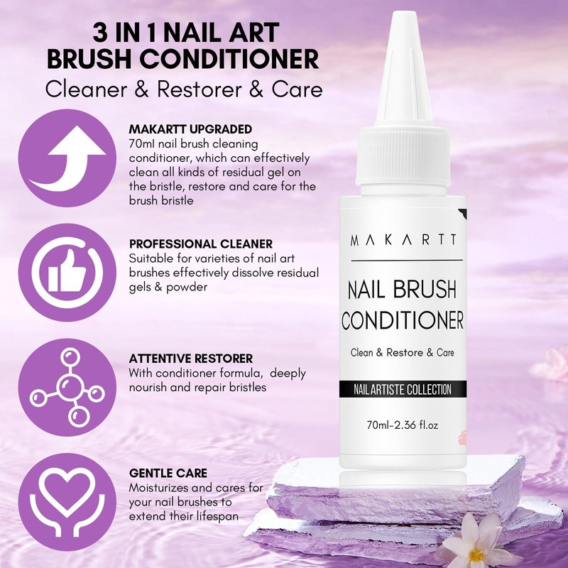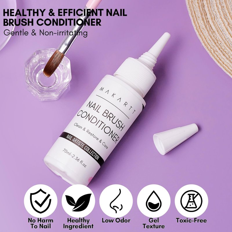- 【Upgrade Nail Brush Conditioner】: Makartt upgraded 70mI nail polish brush cleaner, with a powerful cleaning function, can effectively clean all kinds of residual gel on the bristles, restore the cleanliness of the bristles, care for the bristles, and prolong the service life.