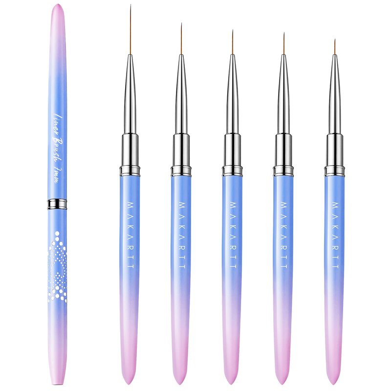 Makartt Nail Art Brushes,Liner for Nails, 5pcs, 7/9/11/15/25mm, Easy Hold, Thin Nail Art Design Brush Detail Brush for Gel Polish Nail Paintings Different Lines 3D Nail Pattern French Tips Nail Tool