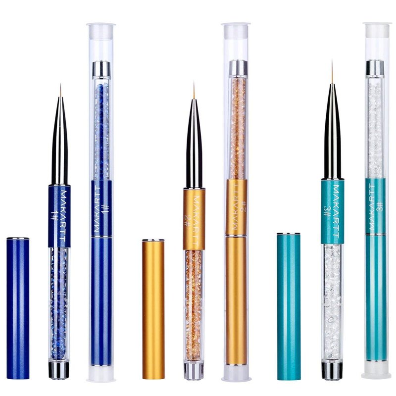 Makartt Nail Art Brushes,Thin Liner Brush,3Pcs,Detail Design Pen Set Acrylic Nail Brush Gel Nail Painting Brush Nail Dotting Tool Nail Drawing Brush Kit Shiny Diamond Premium Handle Home DIY Salon Use
