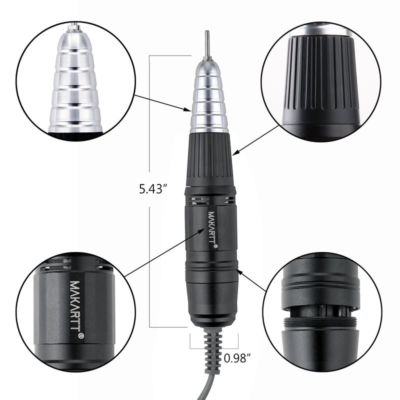 Makartt Nail Drill Handpiece for Up200 Machine Professional Electric File Remove Gel Polish Poly Nail Gel Black B-05