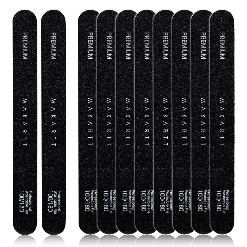 MAKARTT Nail File 100 180 Grit Nails Files for Acrylic Nails Poly Nail Gel Double Sided Black Washable 10 Nail File Kit Set Nail Accessories Manicure Tools Spring