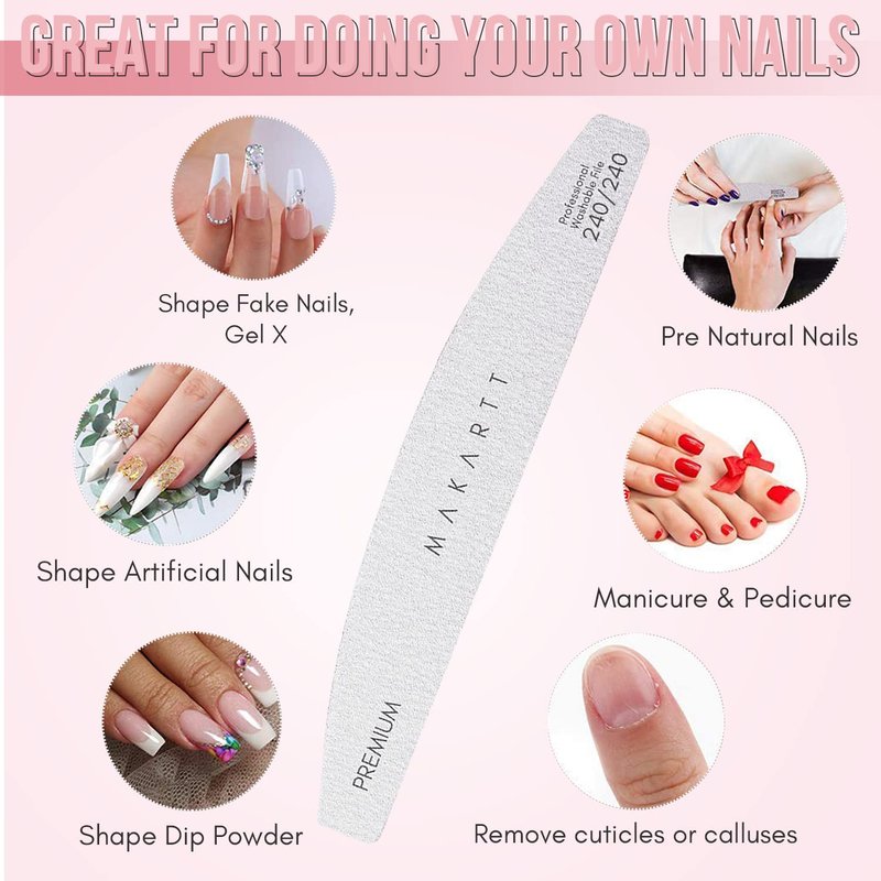 Makartt professional quality emery board nail files are the perfect solution to maintaining your beautiful Acrylic, Natural and False Nails! Whether your nails are chipped, bristled or just require your daily maintenance, these will surely become your best friend.