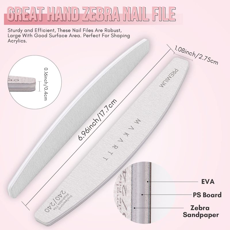 Makartt Nail File 240 240 Grit Zebra Nail File for Natural Nails Gel Polish Dip Powder Shaping Emery Boards for Nails Doubled Sides Washable 10 Nail File Kit Nail Art Manicure Pedicure Tools