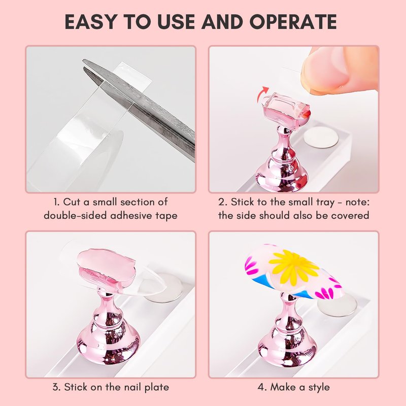 - Effortless Application and Display: This nail holder for painting nails comes with 1m double-sided tape to securely hold your nails in place. Focus on crafting flawless designs without concern for slips or drops. It's also great for displaying your nail art creations and for other everyday uses.