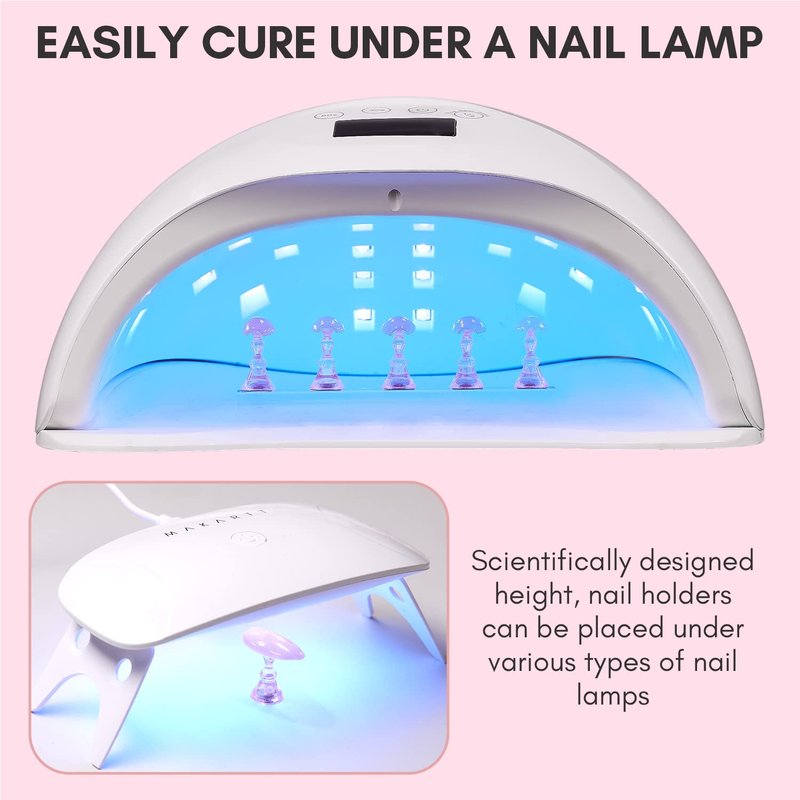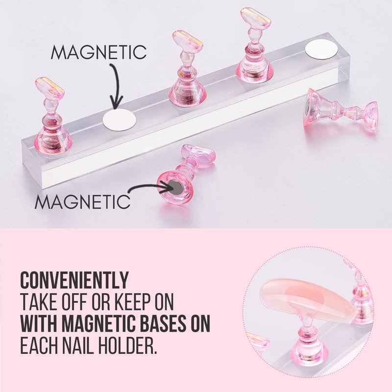 - This Press On Nail Stand Comes with Magnetic Holder,which helps you to easily Display Your Nail Designs,Curing them in the Nail Lamp. This is a great add-ons for your press on nail kit. A Nail Artist Must Haves.