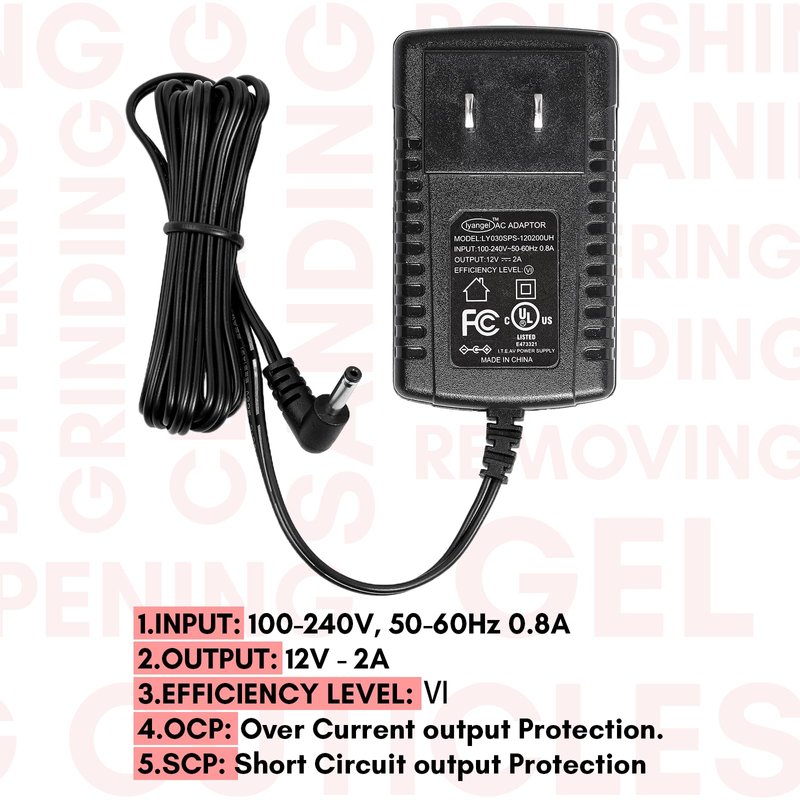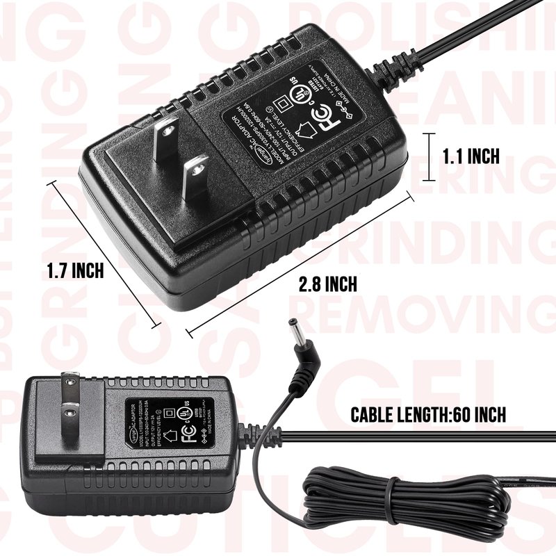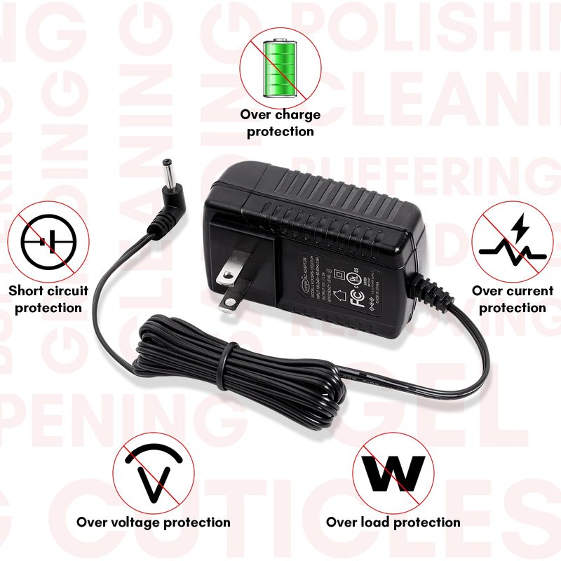 - Original Charger Adapter Cord for Malory Nail Efile: AC Charger supply supports 100-240V worldwide input voltage. It is specially offered by Makartt for Malory pink nail drill machine only.