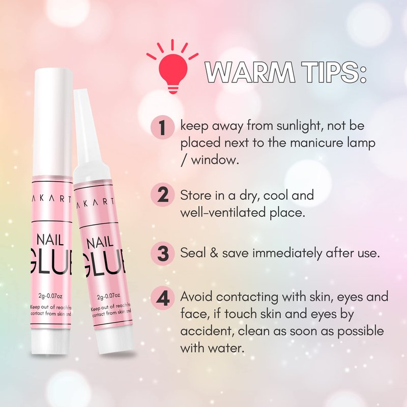 - ♥♥ Widely Use & Easy To Apply- Makartt nail art glue is perfect for stick on false nails long or short press on nails, fake naisl , broken nails repair and small nail art decorations such as rhinestone, beads & gemstone, enable you to create beautiful nail art designs in a short time, great for DIY nails home or professional salon use.