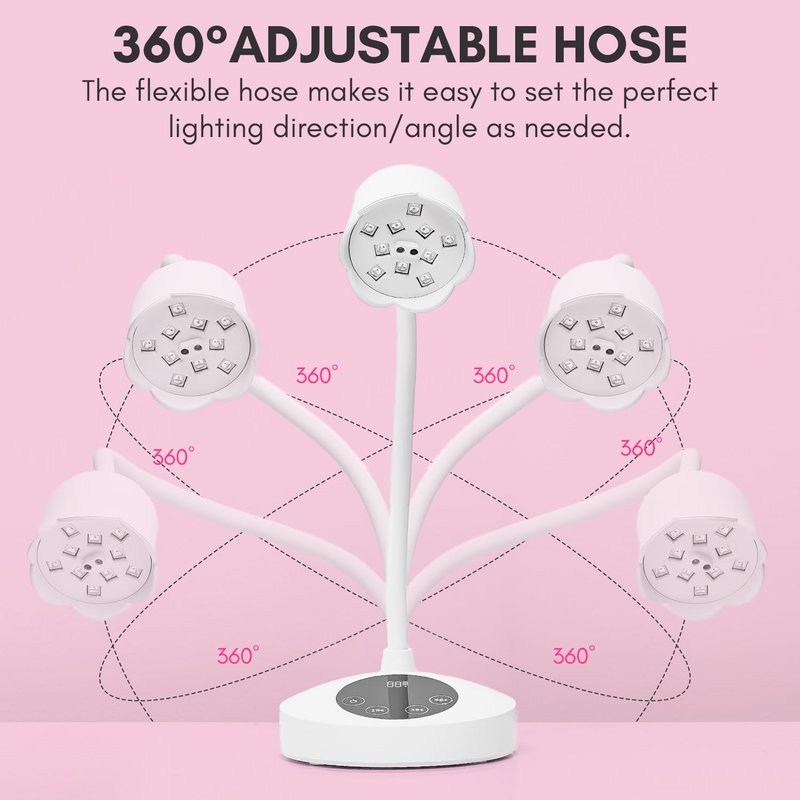 - ✨【360°Adjustable Gooseneck Hose】This nail cure light for nails designed with a long gooseneck(about 9.45 inch), it can be bent and swiveled arbitrarily, allowing you to set the perfect lighting direction and angle, enabling you to focus the light exactly where you need it.