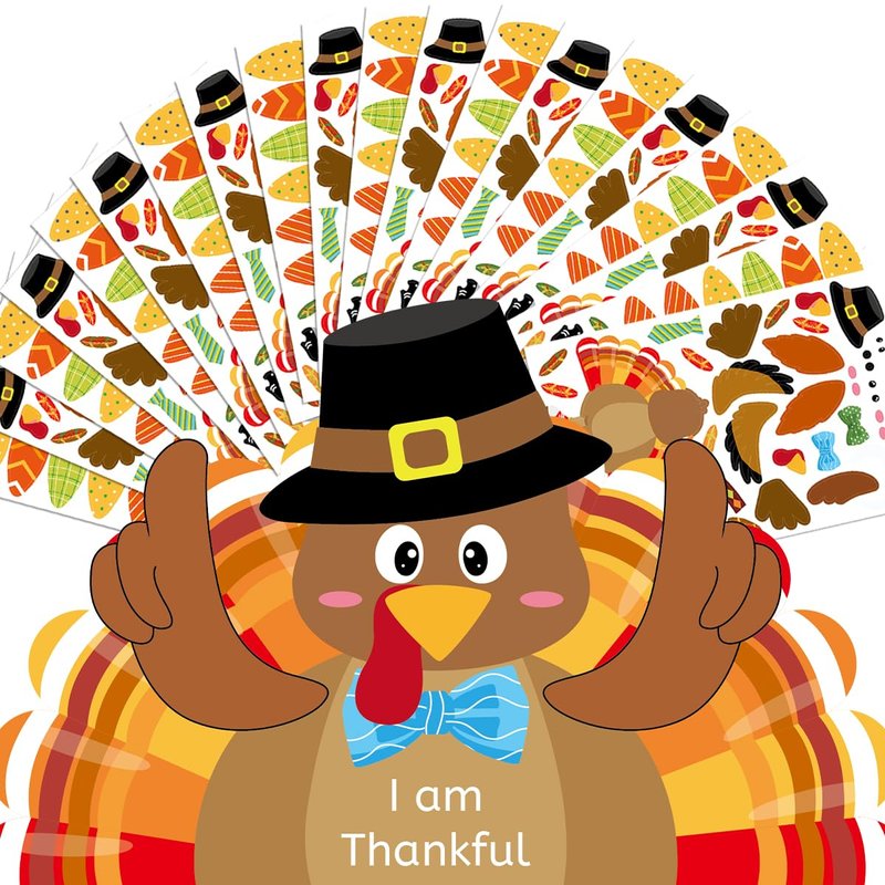 - Make-Your-Own Turkey Stickers: Create your own stickers. Using your imagination to create your turkey with these cute stickers