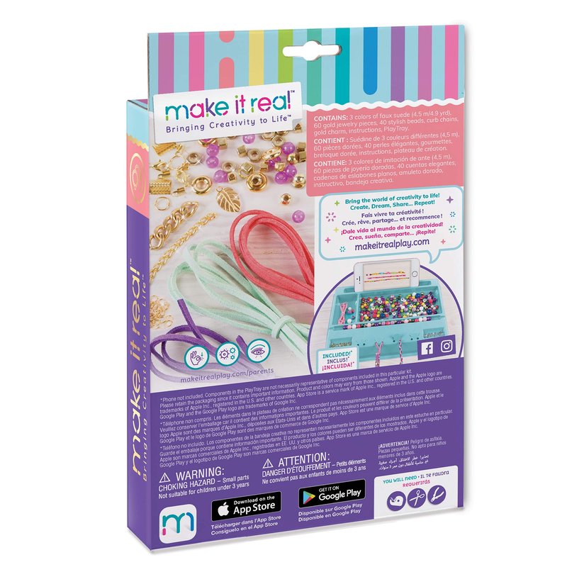 Make It Real: Gold-Link Suede Bracelets Kit - Create 6 Unique Cord & Tassel Charm Bracelets, 105 Pieces, Includes Play Tray, DIY Link & Bead Jewelry Kit, Tweens & Girls, Arts & Crafts, Kids Ages 8+