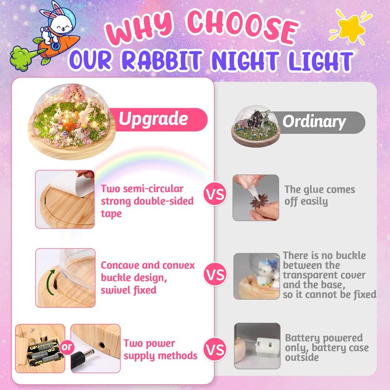 - 【Make your own magic night light】:DIY kits for kids contains everything you need to make rabbit nightlight, Children can customize the craft night light in any way they want, and when the night light project is complete, they will feel very proud of themselves and marvel at the beauty and magic of the light.