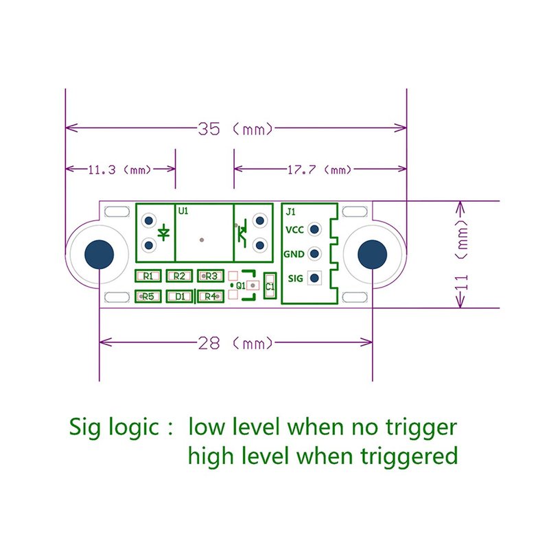 - SIG logic: output low level when there is no trigger and high level when there is trigger.How to trigger the photoelectric: Use the stopper to trigger the limit when it moves to the middle of the red contact groove (it is recommended not to use a transparent material stopper)