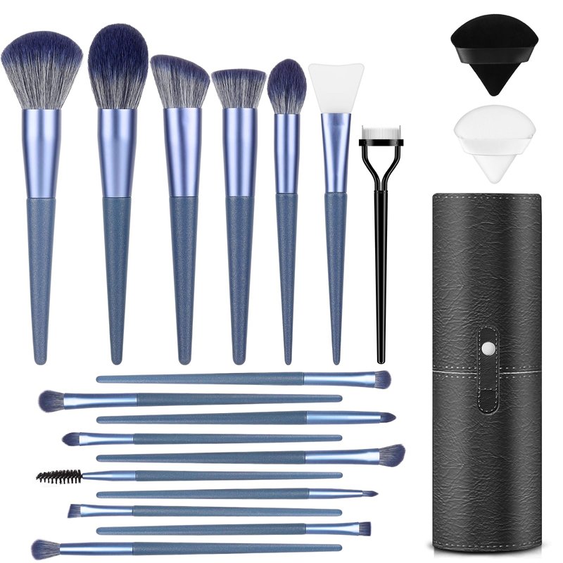 - What You Can Get - The package includes 17 makeup brushes, 2 powder puffs, a leather cylinder box, and an instruction manual. We welcome any suggestions for cosmetic brush improvements and provide friendly customer service.