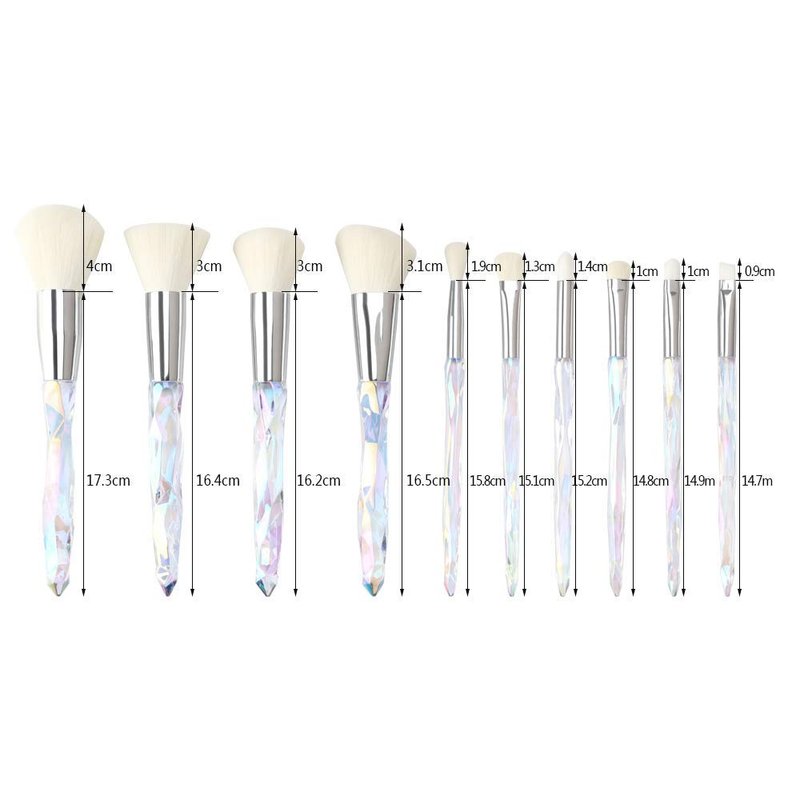 Makeup Brushes Crystal Handle Set, Tenmon 10 PCS Crystal Transparent Handle Kabuki Powder Foundation Brush Concealer Eye Shadow Eyeliner Eyebrow Brush (White)