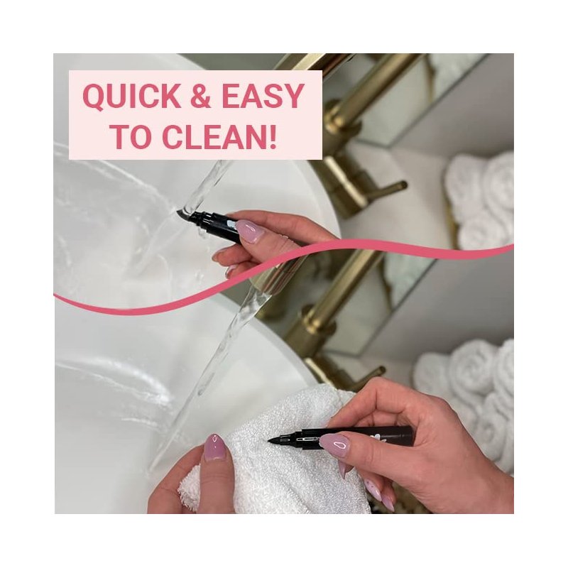 After applying your makeup remover oil, simply wipe the brush clean with a cotton pad or by placing it under running water. Your pen may leave a residue, but we promise it is working magic.