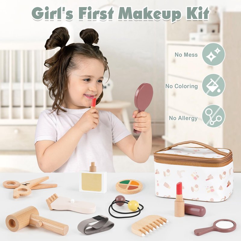 - Surprise Gift for Toddlers: Are you looking for a gift for your little angel? The wooden makeup set is a perfect gift choice for birthdays, Halloween, Christmas or as a reward to add a special memory and fun to a child's journey.