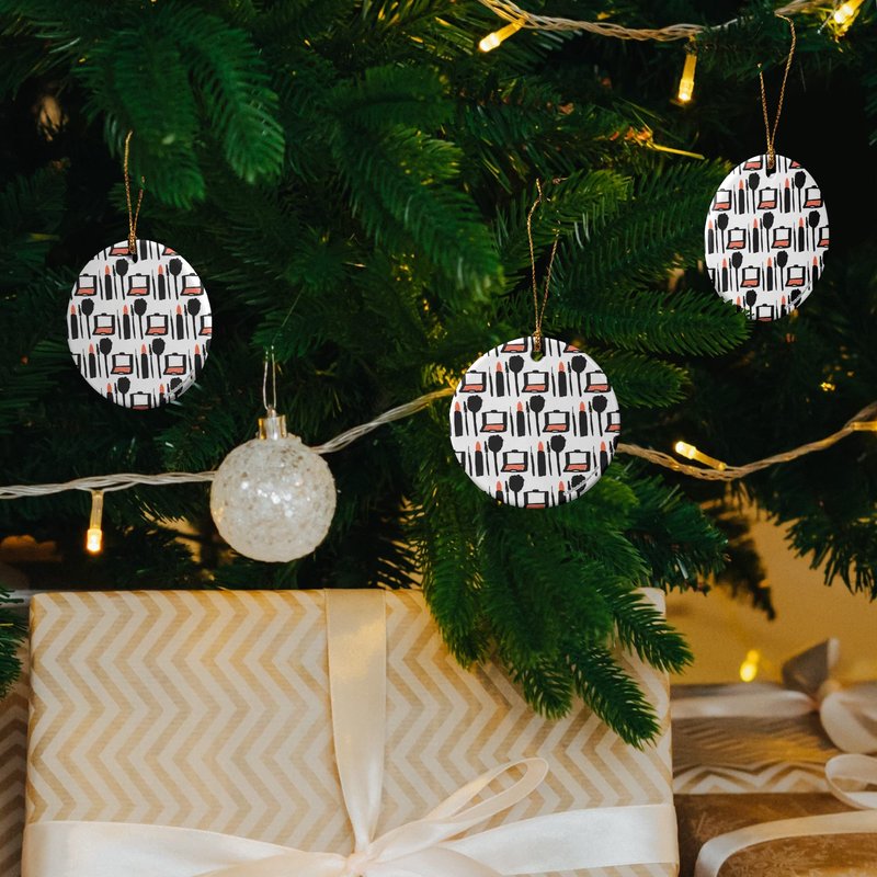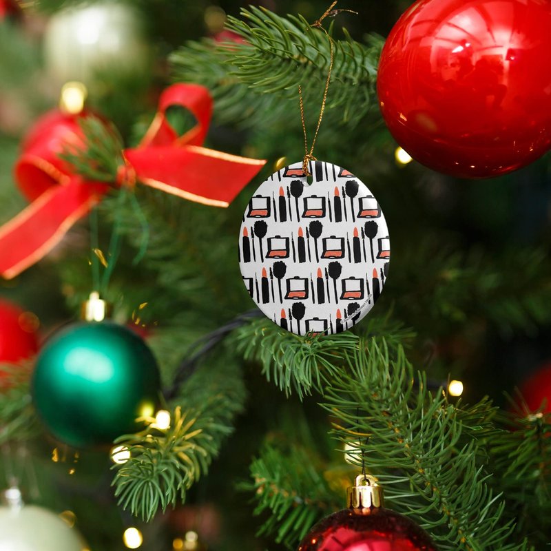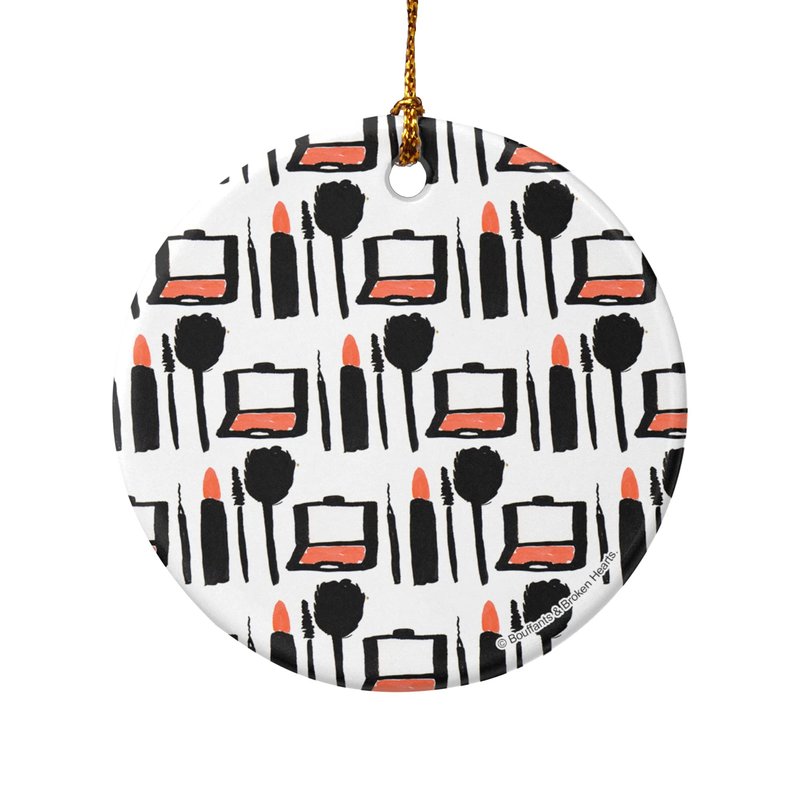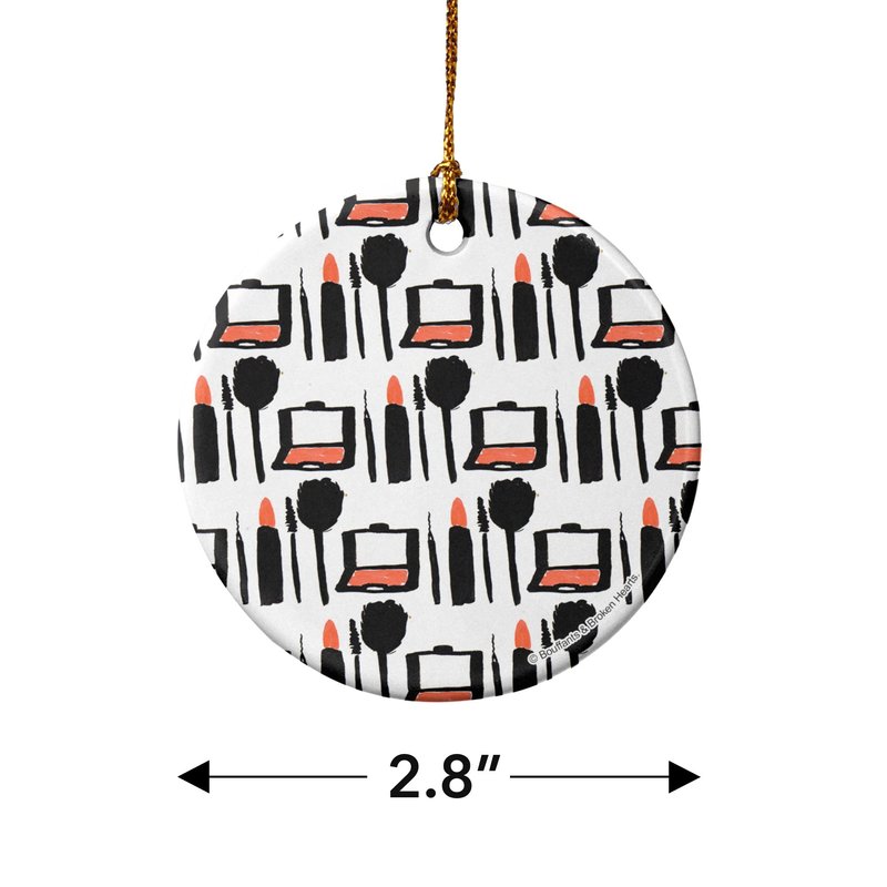 Makeup Lipstick Compact Eyeshadow Mascara Drawing Porcelain Holiday Christmas Tree Ornament - 2.8" (7.1 cm)
