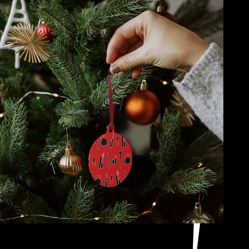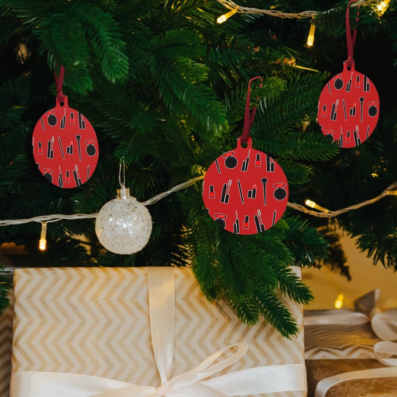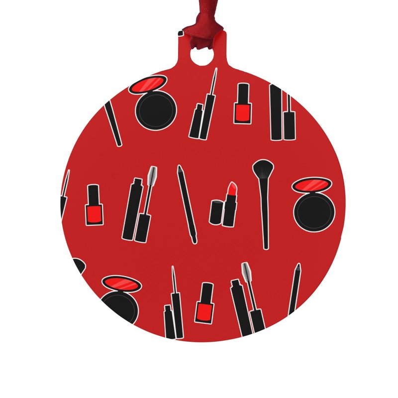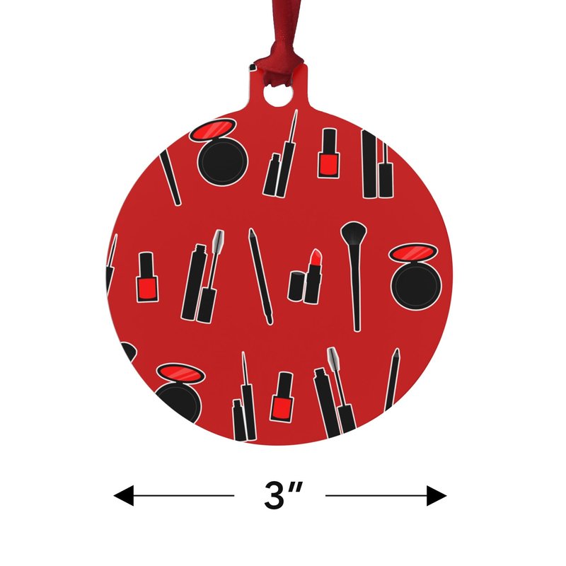 Makeup Lipstick Mascara Eyeliner Pattern Aluminum Holiday Christmas Tree Ornament - 3.0" (7.6 cm) x 3.37" (8.6 cm)