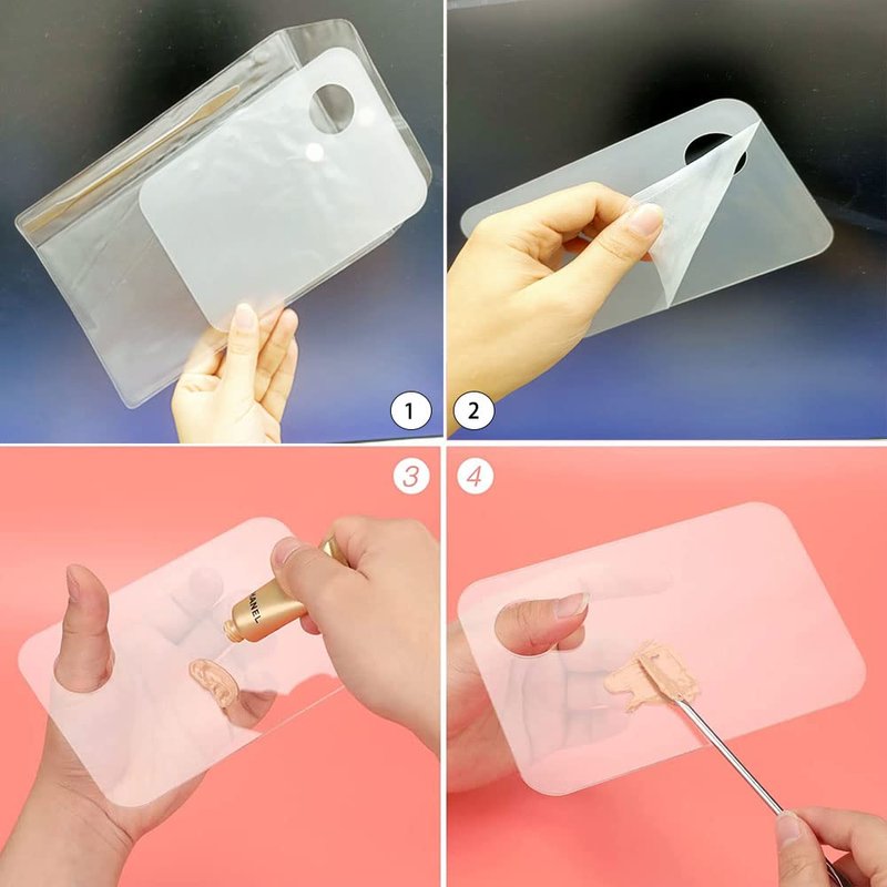 - 【Beautiful Transparent Makeup Palette】: when you remove the protective film on both sides of the paint mixing palette, this silicone makeup spatula's color is clear no matter from which angle, higher light transmittance than glass, allows you to create bespoke colours and formulas customised to your personal beauty skin needs, great for makeup artists as a way to practice good sanitation.
