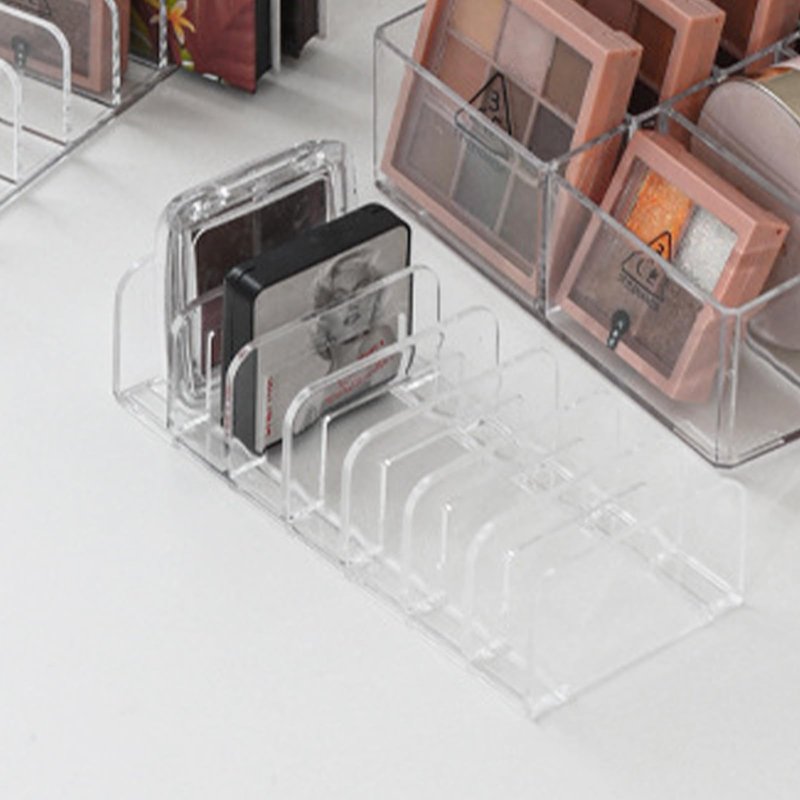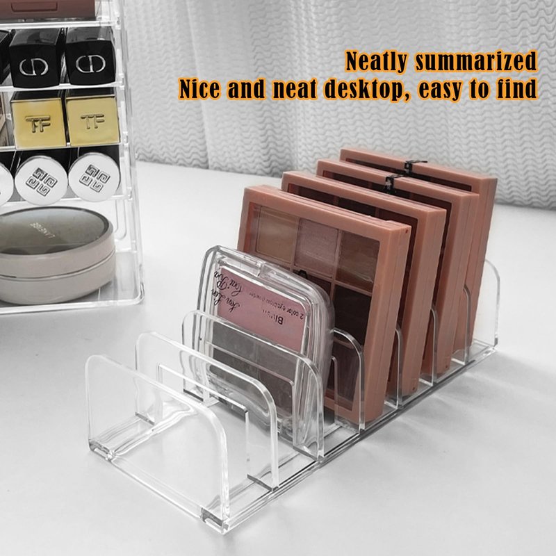 Makeup Palette Organizer,Acrylic Eyeshadow Palette Pallet Holder,7 Sectons BPA-Free Divided Make Up Blush,Contour Storage Holder Cosmetic Eye Shadow Display Stand Clear Rack Vanity Holder. Features: 💎The use of storage boxes can keep Eyeshadow Palette organized or other Items and protected. Specifications: Package includes: Acrylic Material: Acrylic Eyeshadow Holder x2 Color: Transparent Product Dimensions: 6.69x2.9x1.57 Inches Package weight: 120g Love words: Your commend are my sweet time. Hope to bring color to your life.