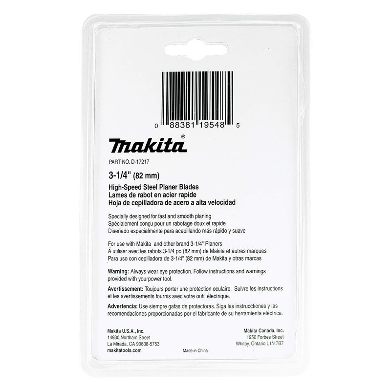 Makita 3-1/4 in. Planer Blade Set includes two Resharpenable HSS Blades, allowing for fast cuts on Hard Wood.