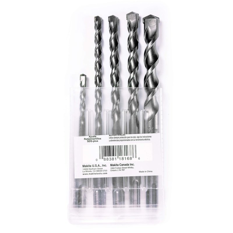 - ✅ MAKITA’S SDS+ Drill Bit Set with Case For 7/8" or Greater SDS-Plus Chuck Rotary Hammer Drills | This set has 5 Premium, Long-Lasting, Heavy-Duty, Tungsten Carbide Bits for EASY & Reliable drilling, screwing and fastening into 4" Deep Heavy-Duty Masonry, Reinforced Concrete, Tile, Brick & Cinder Block