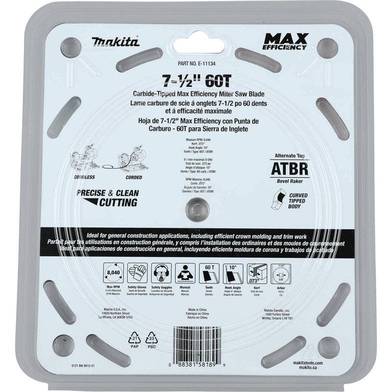 Makita E-11134 7-1/2" 60T Carbide-Tipped Max Efficiency Miter Saw Blade