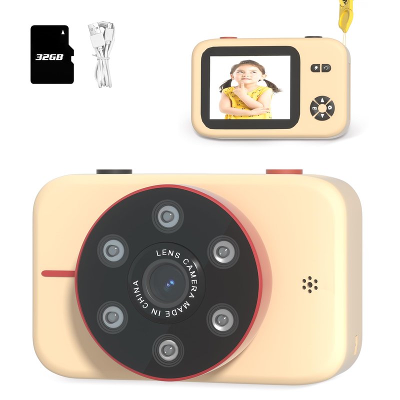 Makolle Camera for Kids,Christmas Birthday Gifts for Kids Age 3-9,1080P Video Cameras for Kids 8-12,Childrens Digital Camera for vlogging Portable Kids Selfie Camera with 32GB SD Card Apricot