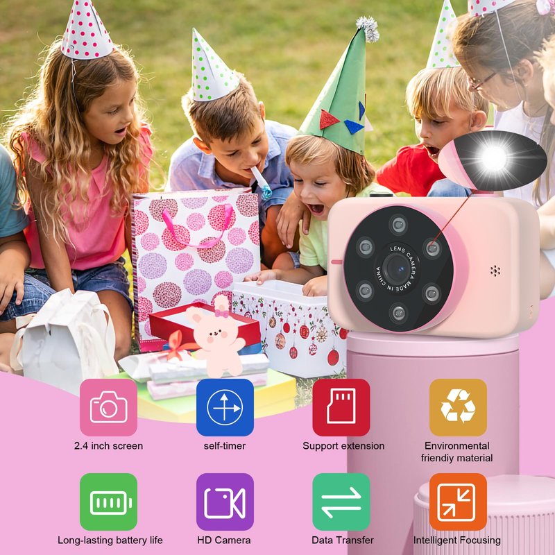 - 【Children's High-Definition Digital Video Camera】- The camera is equipped with auto-focus, 8 million pixels and 1080P video. It has a 2.4-inch professional eye-protection high-definition screen, which does not ensure the safety of children's eyesight. The operation is extremely simple. Children can easily switch shooting modes, start or pause shooting just by pressing a few simple buttons.