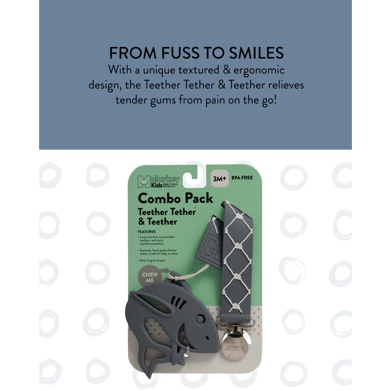 "Malarkey Kids focuses on providing functional and practical baby essentials which are meant to reduce the gum discomfort of your baby and make your life easier without compromising on safety. We make it a rule to work only with premium materials and trustworthy suppliers to meet your rigorous expectations. Not entirely pleased with your order? Our customer care department will gladly take care of any request! Why choose to use? The premium 2 in 1 teether and tether is a must-have for your baby. A one-piece design makes it super safe for your baby with zero choke hazards. Made of food-grade silicone, it features a non-slip grip, is the perfect companion for gum soreness, and is bound to reduce the gum discomfort of your baby. The baby teething toy comes with a pacifier clip that is a must-have for preventing the pacifier from falling on the floor. An ideal gift for your loved ones, it will surely be appreciated. Still not convinced? Here are some of the amazing features of this product: Set includes: 1 x teether and 1 x pacifier clip; Practical and versatile; Durable and reliable; Made of food-grade safe silicone; Ideal baby shower gift; BPA, PVC, and Phthalates free; Ideal for gum discomfort and soreness relief; A must have for any baby. You’ll fall in love instantly with our Teether and Pacifier Clip set and other baby teether toys!"