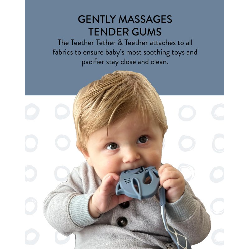 - 2-in-1 Teething Solution: Our Teether Tether + Teether combines a teether and a tether into a single, innovative product, offering double the benefits for your baby's teething journey.