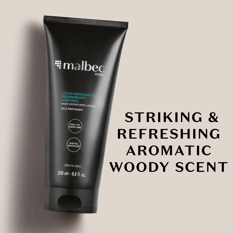 - Specially Developed - Malbec Vert Moisturizing Body Lotion was specially formulated for men, making it ideal for maintaining body hydration with the scent of Malbec Vert. Designed to repair and moisturize the rough appearance of dry skin