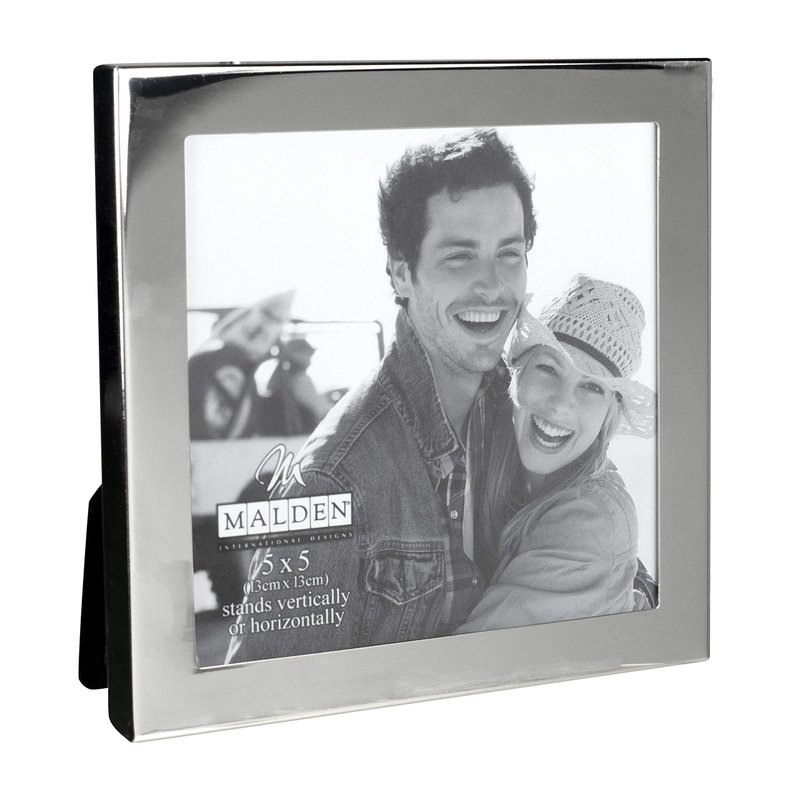 - PERFECT FOR EVERY APPLICATION: Showcase your treasured photos with Malden’s 5x5 Essentials Bright Silver Engravable Metal Photo Frame. Attractive design, perfect for any home or the office, this frame is guaranteed to add new life to your space. Also perfect for gift giving!