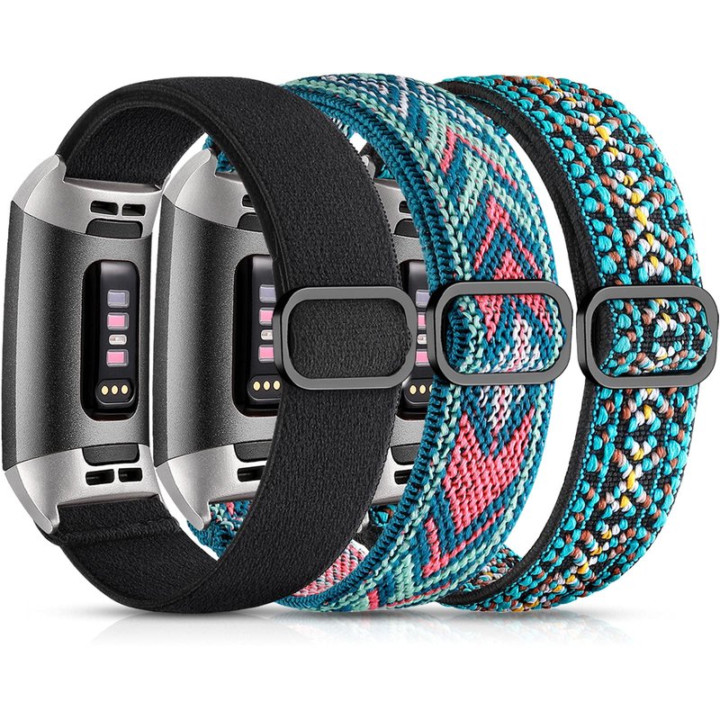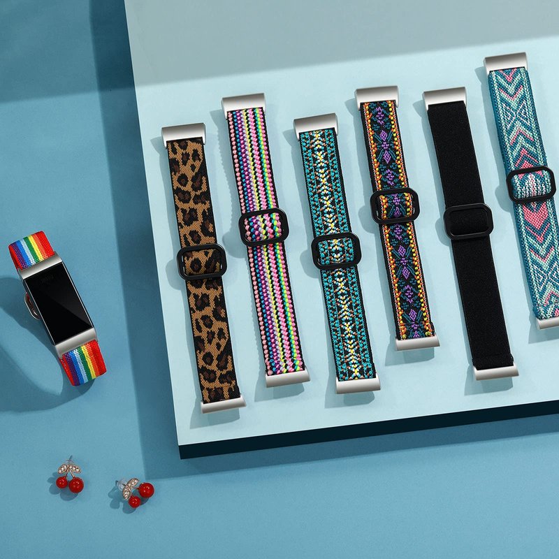 ---- Various pattern or solid colors offering a brand new face for your watch to match your mood and outfits; Ajustable one size design elastic Charge 3/Charge 4 bands fits for 6.4" to 10" (165mm to 255mm) wrist.
