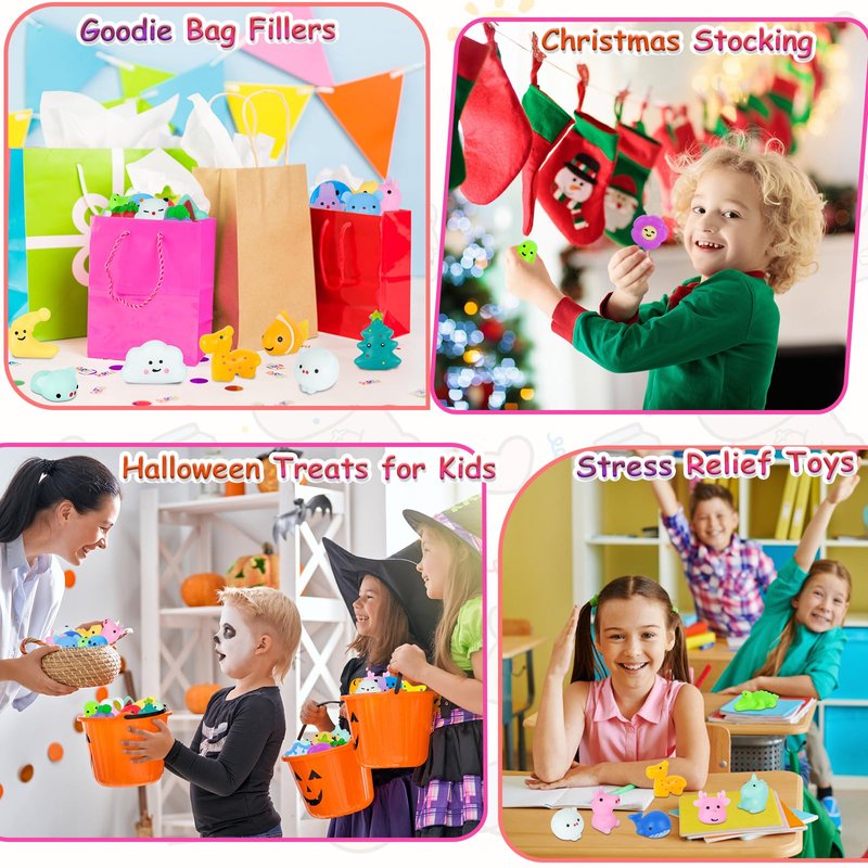 🎃Put Halloween mochi squishy toys in Halloween party goodie bags, birthday party favor bags, Halloween goody bags, Halloween treat bags, birthday goody bags, treasure box, school prize box or moji moji claw machine.