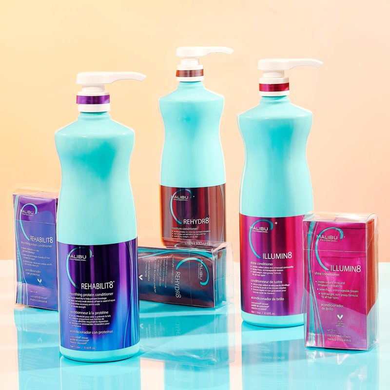 - How to Use - Following your anti-breakage shampoo, apply Malibu C REHABILIT8 Smoothing Conditioner & protein treatment for damaged hair. Allow this salon conditioner to process for at least 2 minutes, then rinse. If desired, blend in with a customized Concentr8 Cocktail such as REHYDR8 Moisture Conditioner or ILLUMIN8 Shine Conditioner