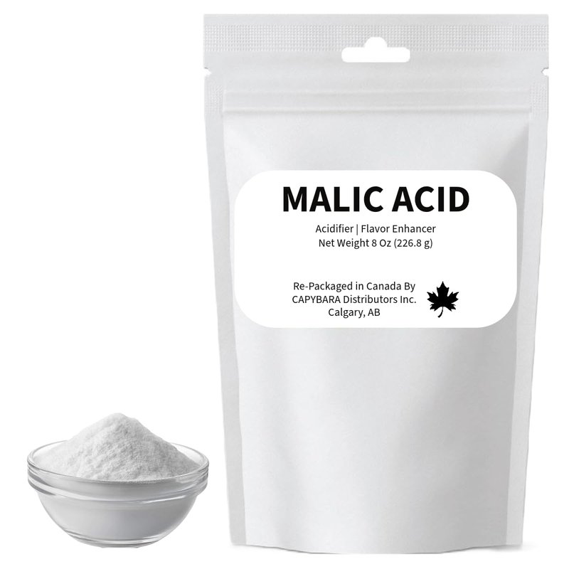 Malic Acid Food Grade - 8 Oz (226.8 g) - Used In Making Wine Cider Mead Beer Baking Soda Sparkling Water - Sold by CAPYBARA Distributors Inc.