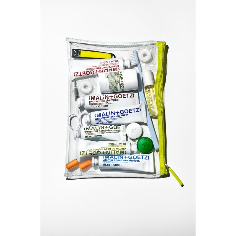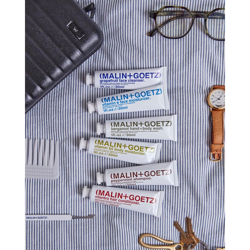 Malin + Goetz Essential Starter Kit, 1 Fl. Oz. - Hair Shampoo & Conditioner, Facial Cleanser & Moisturizer, Hand & Body Wash, Body Moisturizer, Travel Kit, Vegan & Cruelty Free