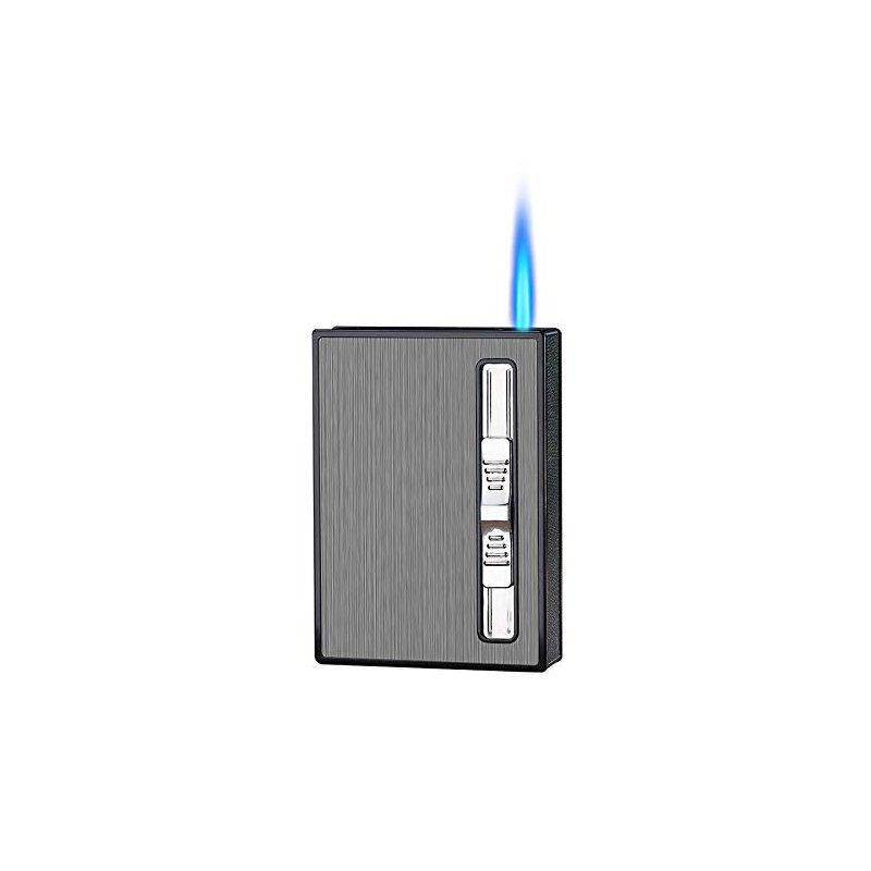 Malisseladi Cigarette Case with Built-in Lighter Windproof Refillable Butane Jet Torch Lighter Automatic Ejection Cigarette Case Dispenser Box Holder (Black)