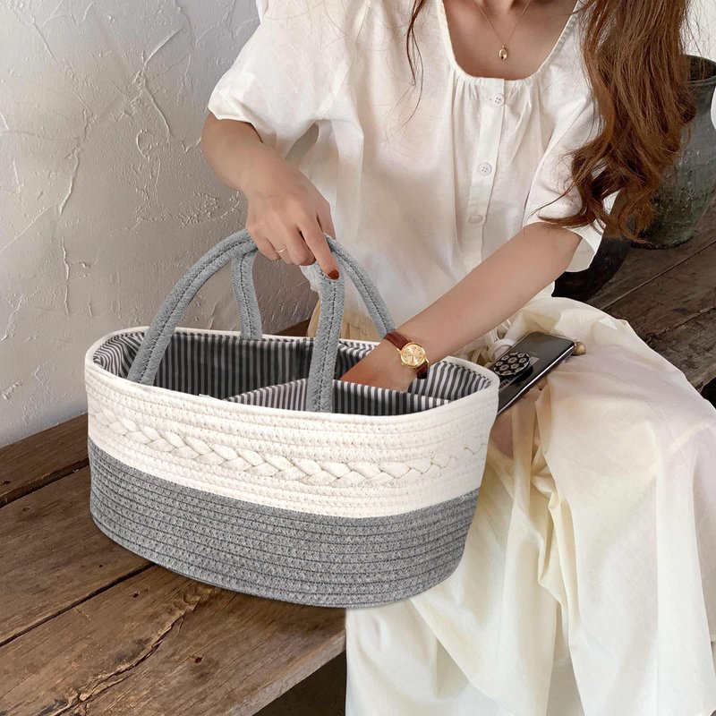 - Versatile Caddy Organizer- Functional, portable and practical diaper caddy organizer fits for different stages of baby and this basket will be great to come to the nursery, bathroom, living room and car; You can serve it as a picnic basket, grocery basket, toy basket and car organizer
