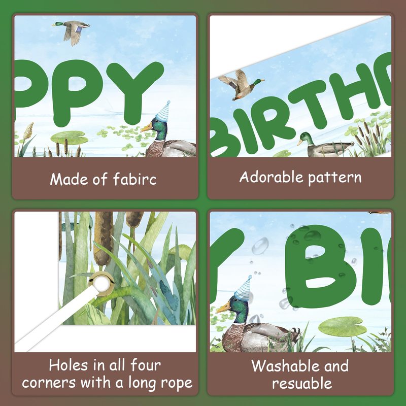 - Duck Hunting Birthday Party Decorations: This mallard duck party banner is suitable for 1st/2nd/3rd/4th/5th birthday party, mallard duck themed party and duck hunting party.