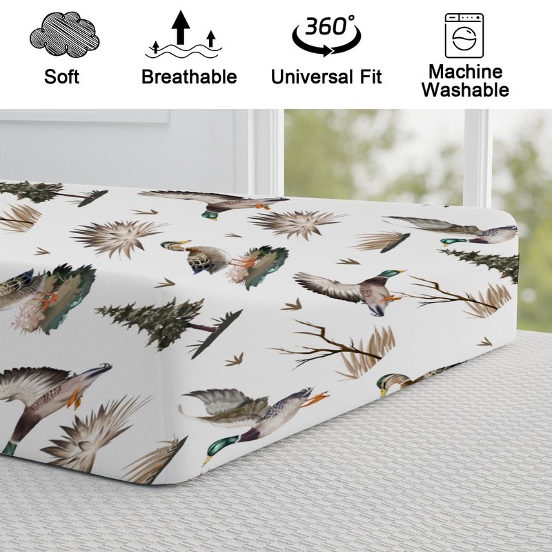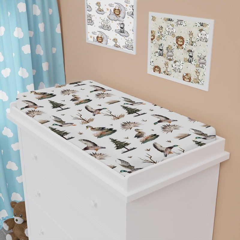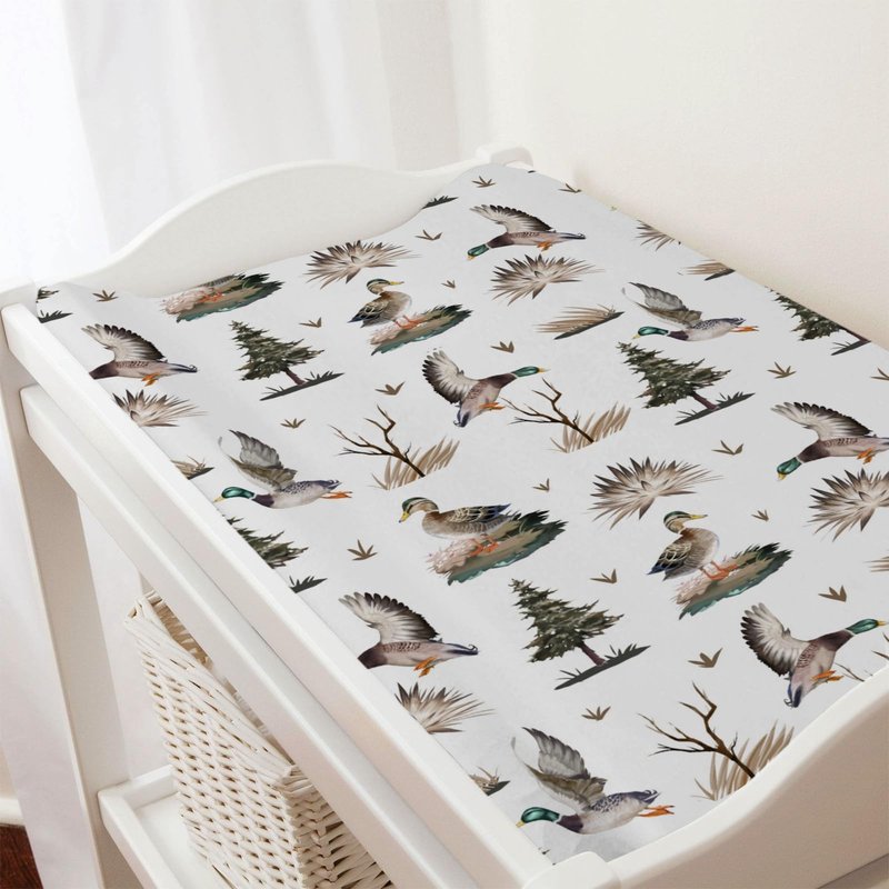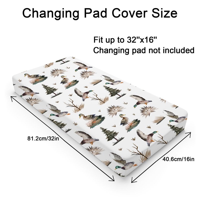 - 【Stylish Design:】Feature a Mallard Duck Duck Hunting pattern, which will be loved by baby boys and girls, perfectly decorate your baby's room. These changing pad covers mix the fun of matching, printed patterns and muted colors to create a cozy sleeping area.