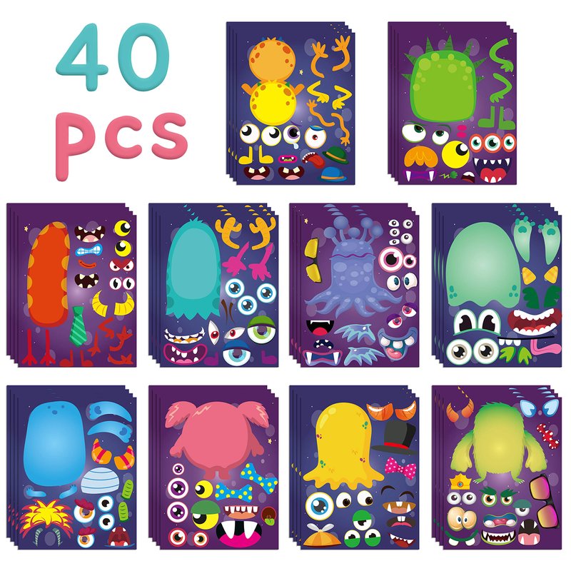 MALLMALL6 40Pcs Monster Themed Make a Face DIY Sticker set is amazing party games for kid to pretend play as a decorator, and decorate their favorite cartoon monster, it will be a big surprising gift.