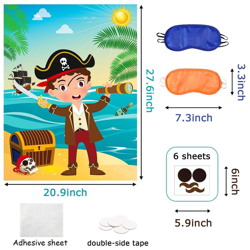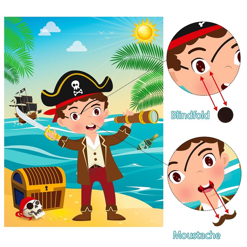- [Funny Party Games] Pin the eye patch and mustache for the pirate, it is the creative party game idea that will make your party full of joy,also an amazing group game for kids to take challenges and bound together to win the prizes.