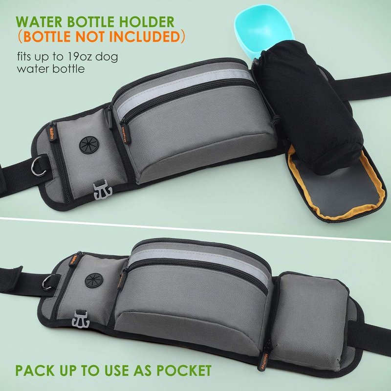 MalsiPree Dog Treat Pouch for Training – Built in Poop Bag Dispenser w/Water Bottle Holder, Hands Free Waist Belt Fanny Pack for Puppy Class, Travel, Running, Walking, Hiking (Bottle & Bags Not Inc.)