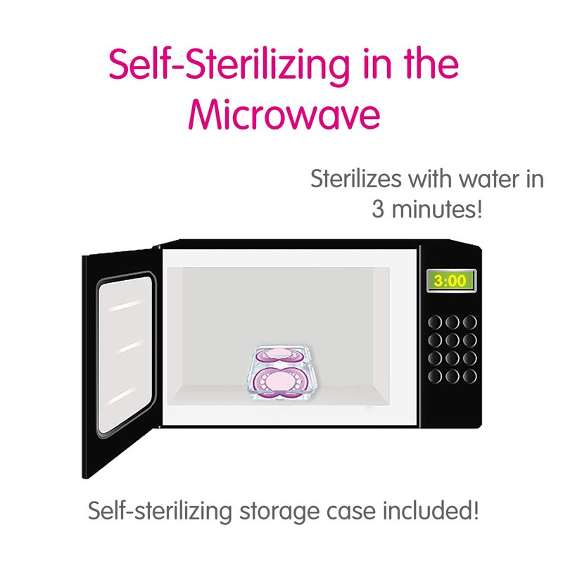 - STERILIZING STORAGE CASE - Add water and pop into the microwave to sterilize MAM pacifiers in just 3 minutes. No separate sterilizer means fewer baby items to take on the go!