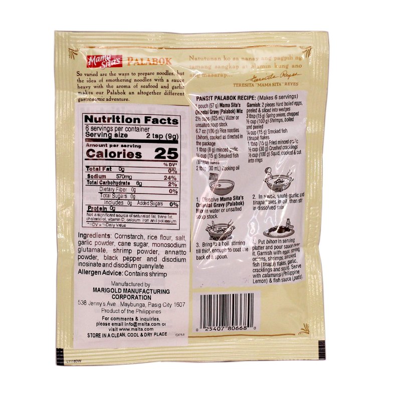 - 1. Mama Sita's Palabok Oriental Gravy Mix is a delicious and authentic Filipino dish with a savory blend of shrimp, garlic, and onion.