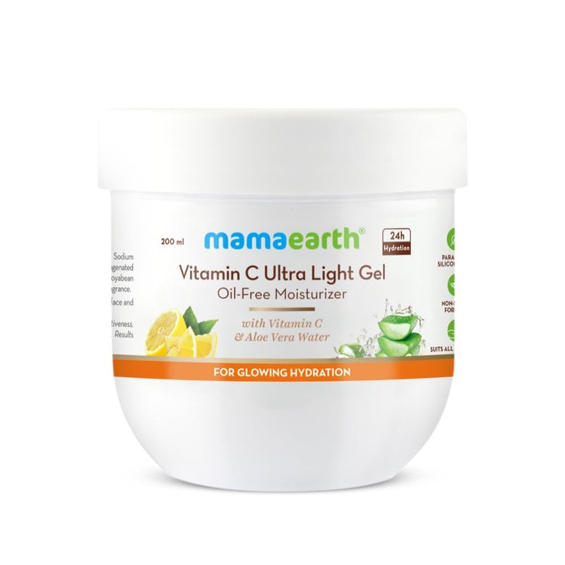 A daily dose of lightweight hydration with the natural goodness of Vitamin C - that's Mamaearth Vitamin C Ultra Light Gel Oil-Free Moisturizer for you. Lightweight and effective, Mamaearth Vitamin C Ultra Light Gel Oil-Free Moisturizer is loaded with antioxidants as well as hydrating properties. Vitamin C reduces dullness while you’ll receive dollops of cooling benefits thanks to Aloe Vera Water. This moisturizer is a shot of hydration your skin will love. Apply it in the morning to prepare your skin for the day or use it at night and give your skin time to repair. This moisturizer absorbs quickly and gives round-the-clock hydration to the skin. Dermatologically tested, this Vitamin C Ultra Light Gel Oil-Free Moisturizer has no harmful chemicals and is free of toxins, Parabens, and mineral oils.